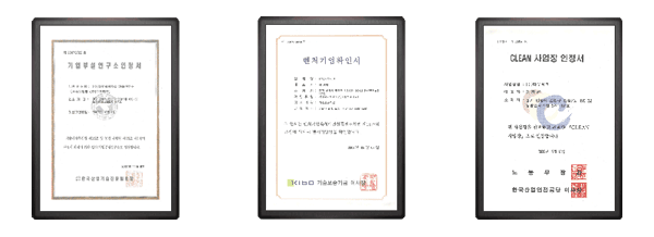 기업부설 연구소 인증서 벤처기업 확인서 CLEAN 사업장 인증서